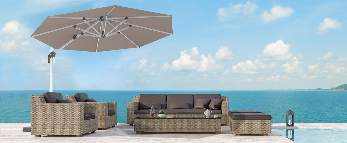 The Grande Square™ is the perfect offset cantilever umbrella for any outdoor setting. This 9ft x 9ft square offset cantilever umbrella can be tilted or rotated with extreme ease. Choose from our great selection of Terylast™ or Sunbrella® fabrics.