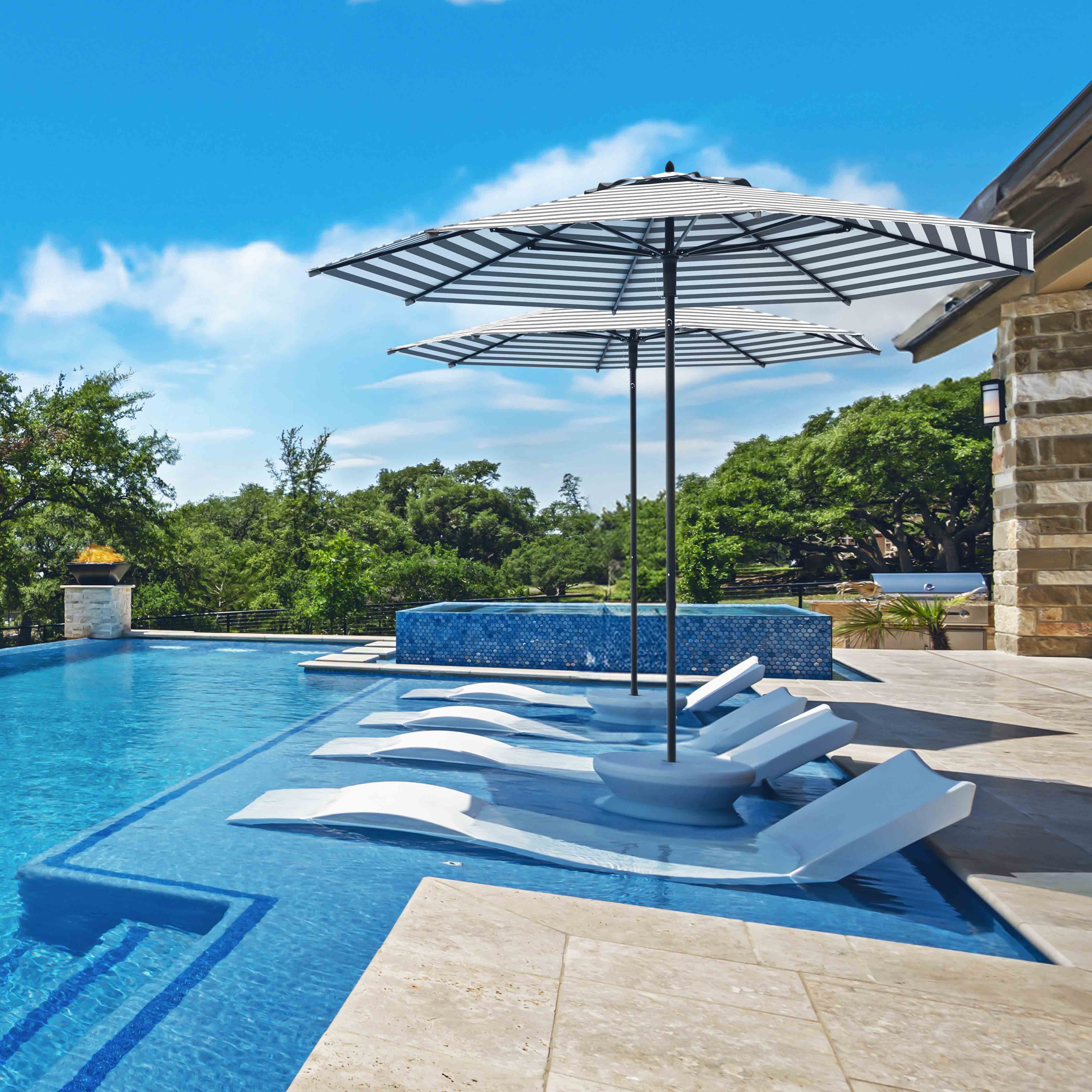 Les tissus exclusivement Sunbrella sont teints dans la masse, imperméables et résistants aux UV.