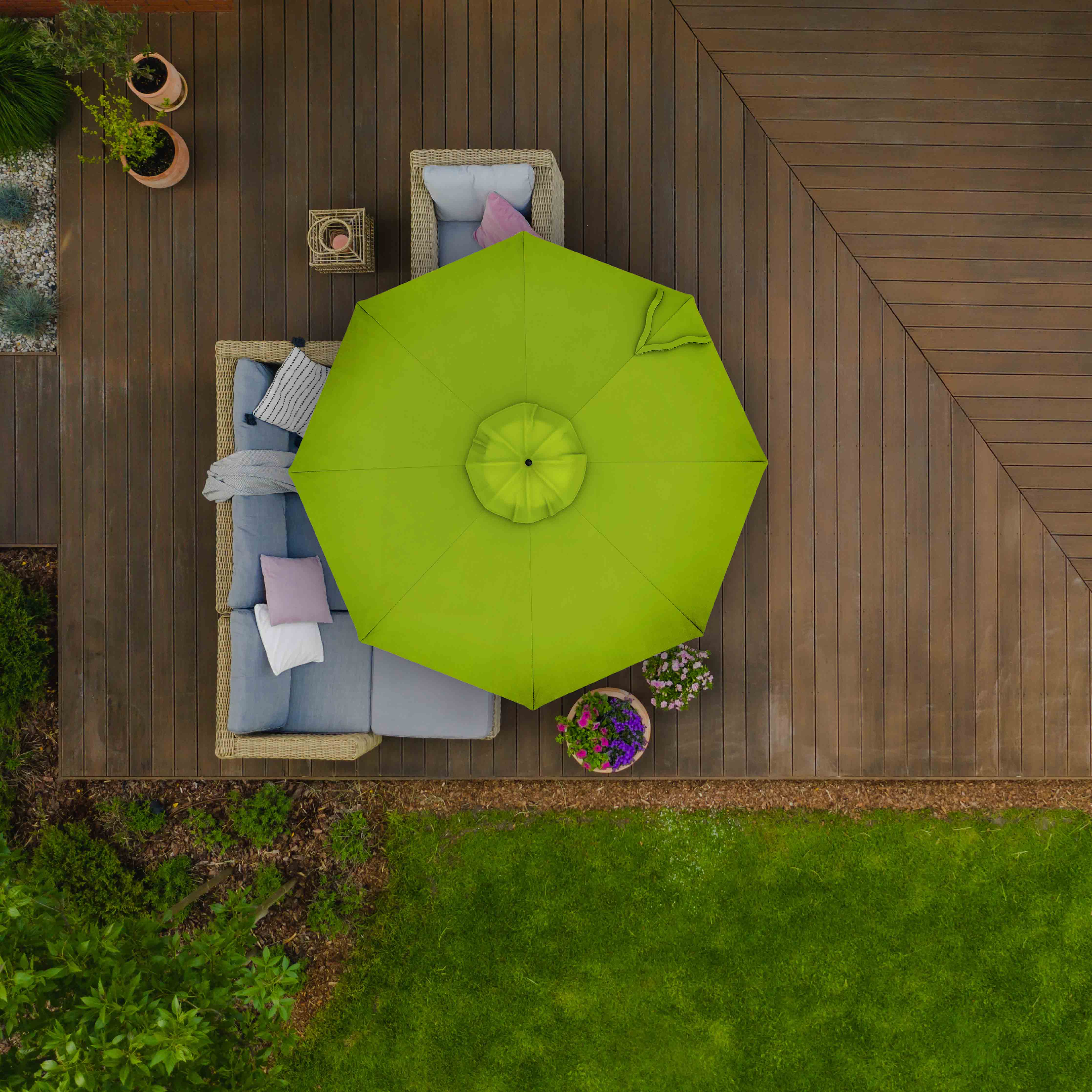 Le mécanisme push and pop promet d'être le système d'ouverture le plus fluide pour votre parasol. En poussant simplement la poignée vers le haut, le parasol se verrouille automatiquement. Pour une fermeture facile, poussez la poignée vers le bas jusqu'à la fermeture complète.