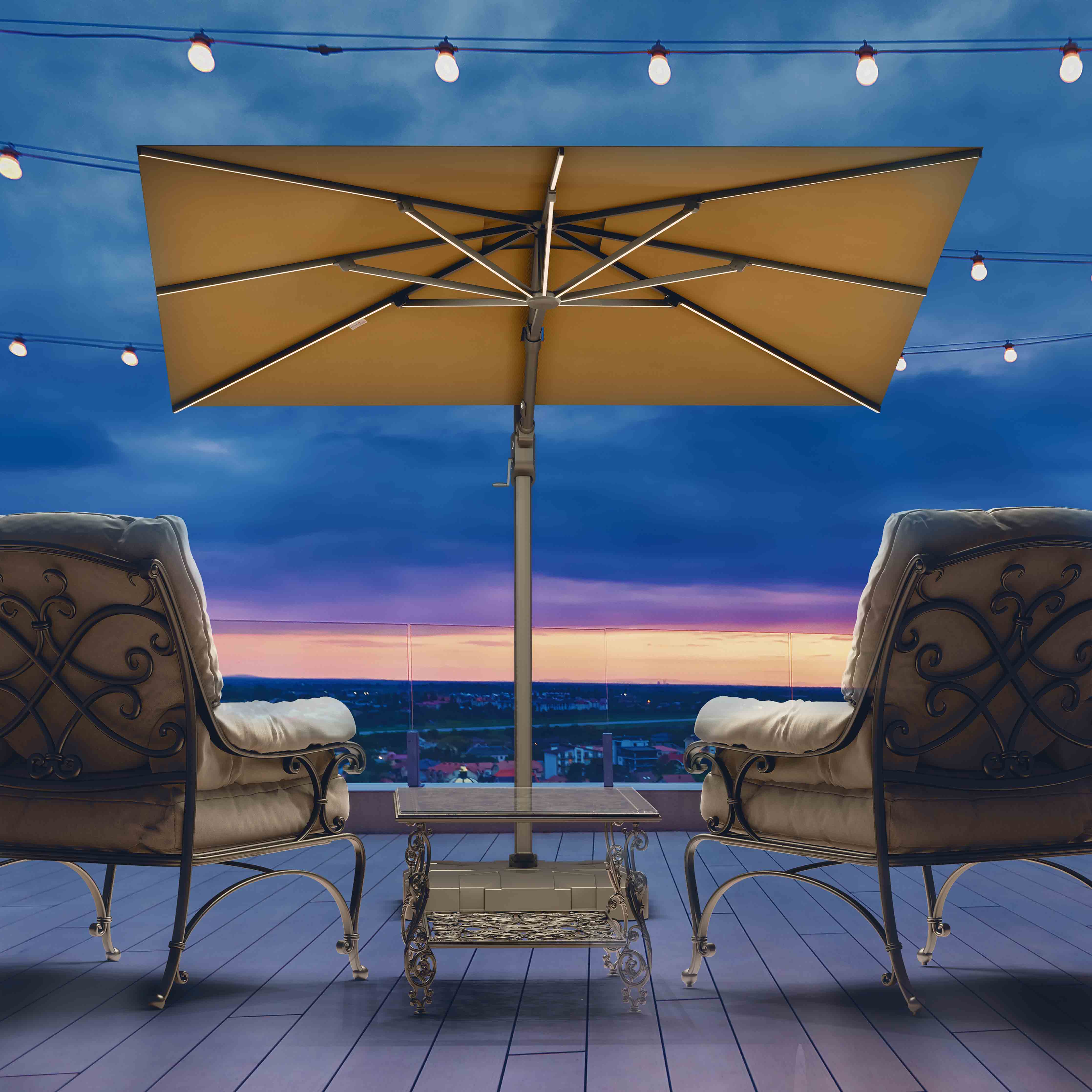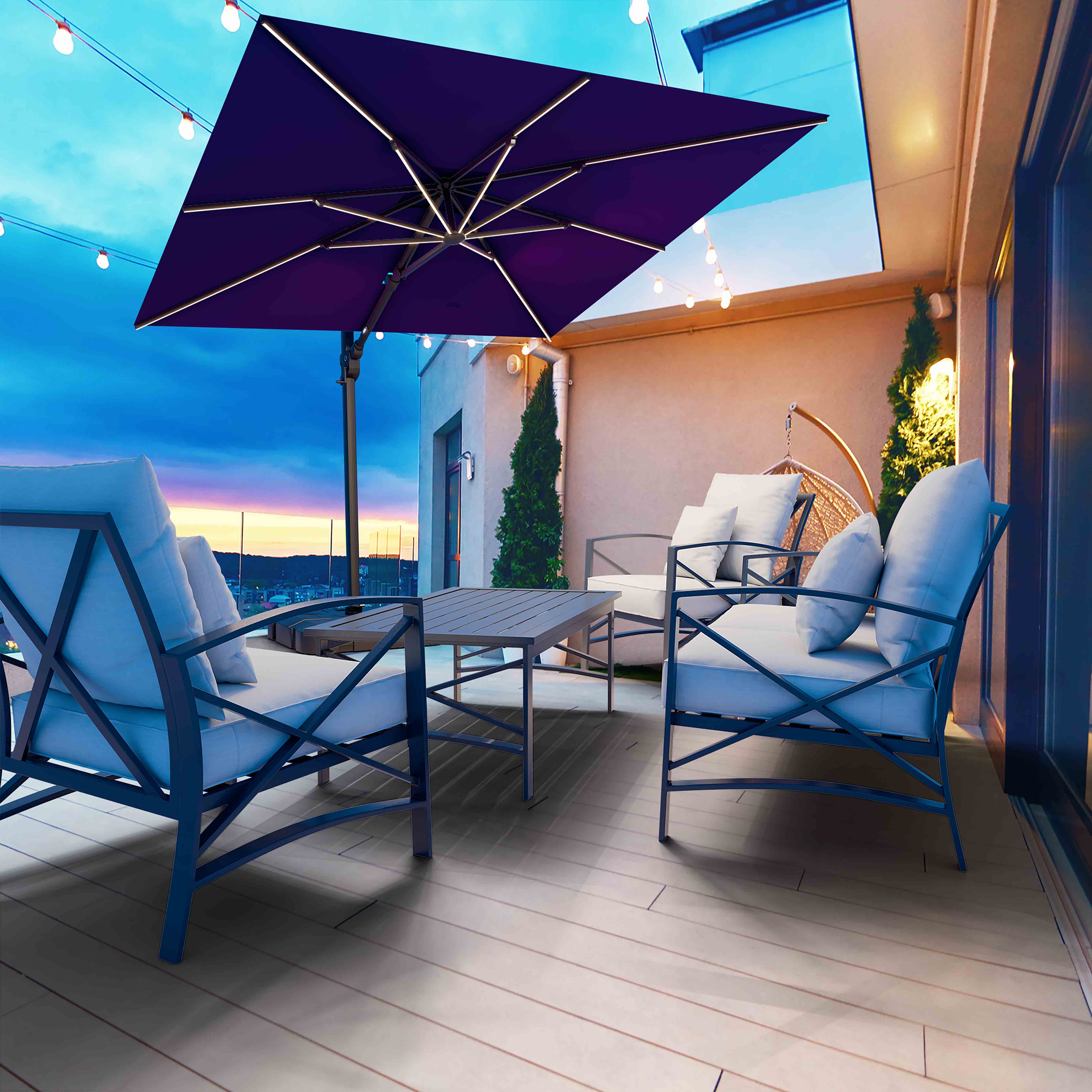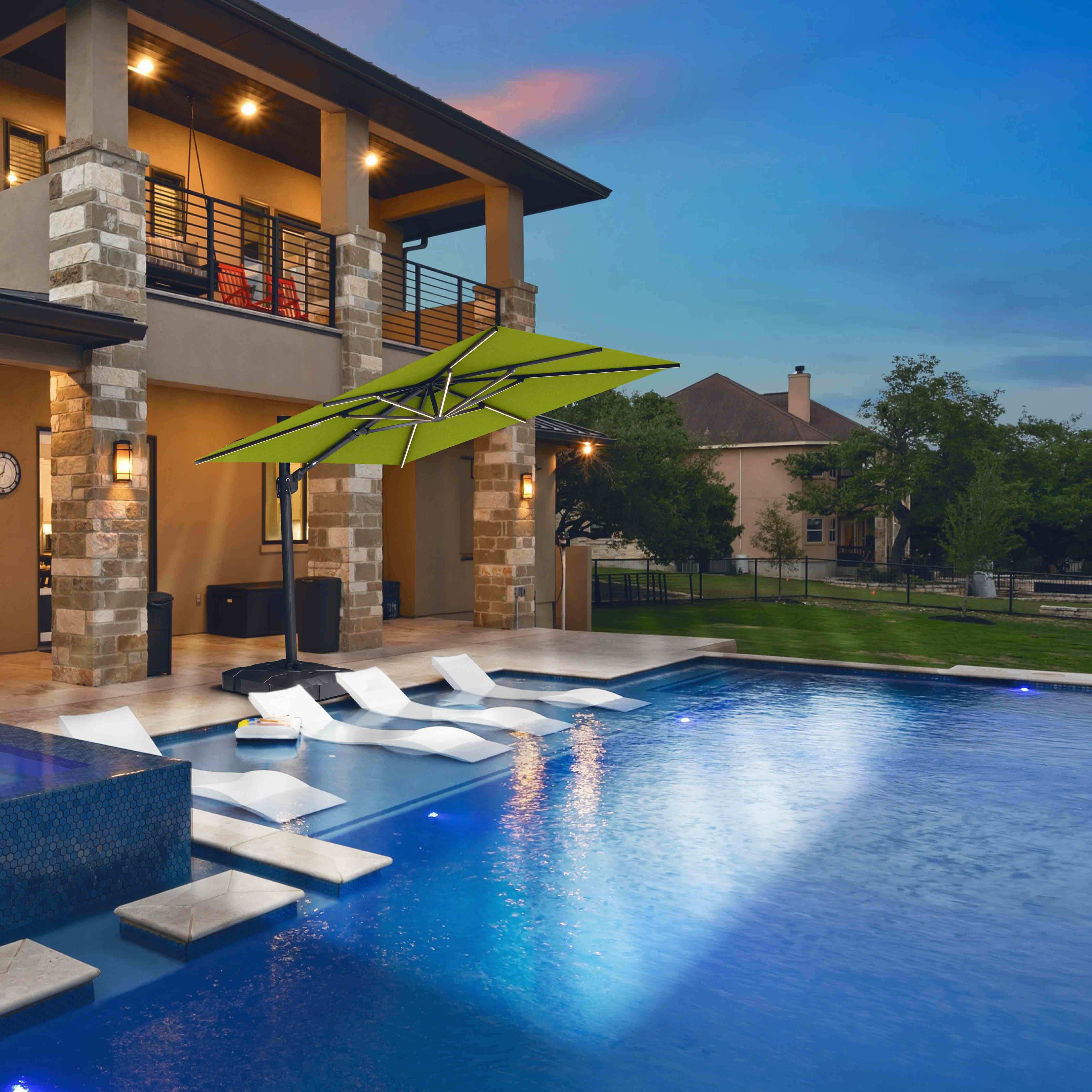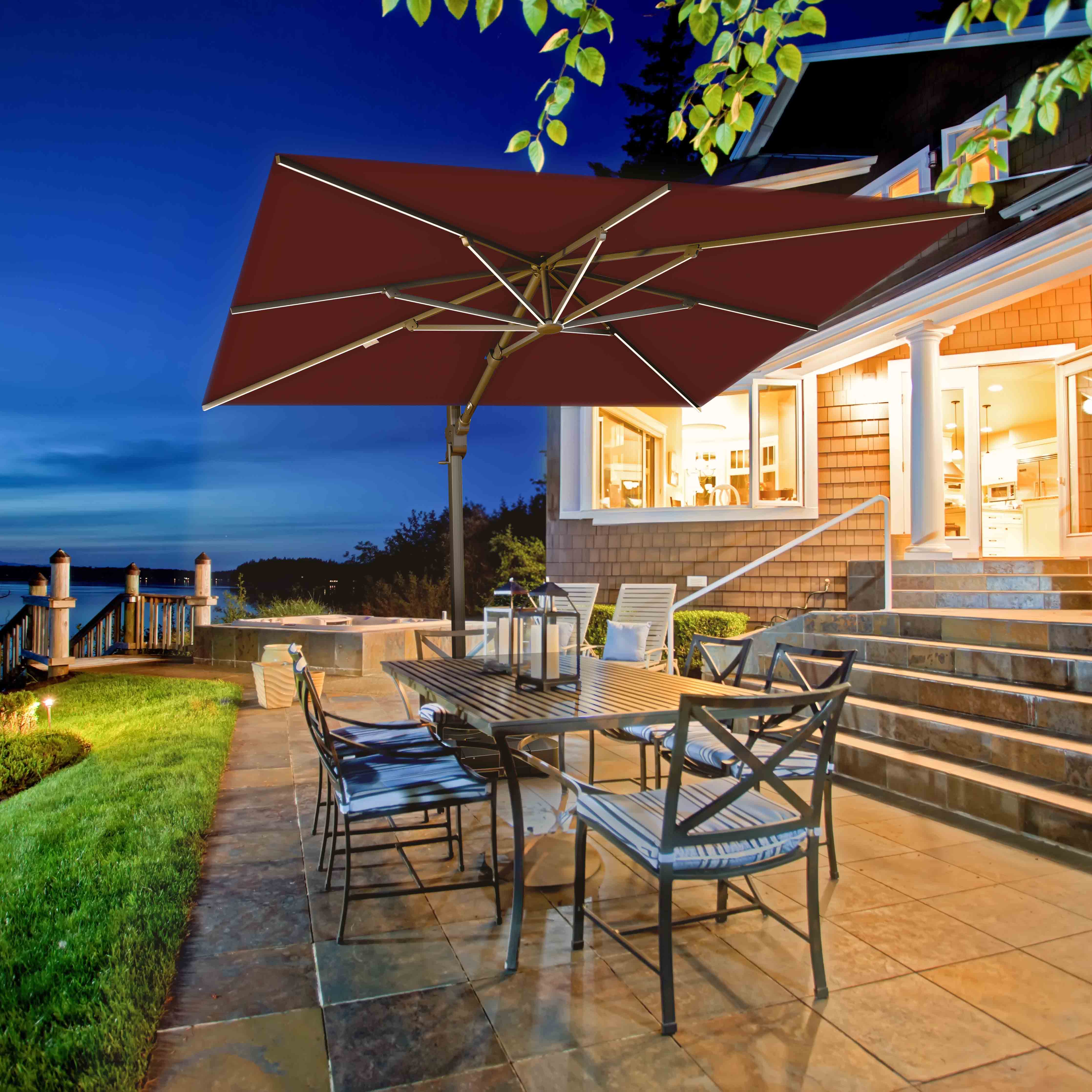 Le parasol déporté Supreme™ est le plus grand de notre gamme. Il regorge de fonctionnalités telles que les nervures lumineuses LED, l'inclinaison, le pivotement et la rotation. Avec cet auvent carré de 10 pieds x 10 pieds, vous pouvez être sûr que votre espace sera couvert de la plus belle ombre.