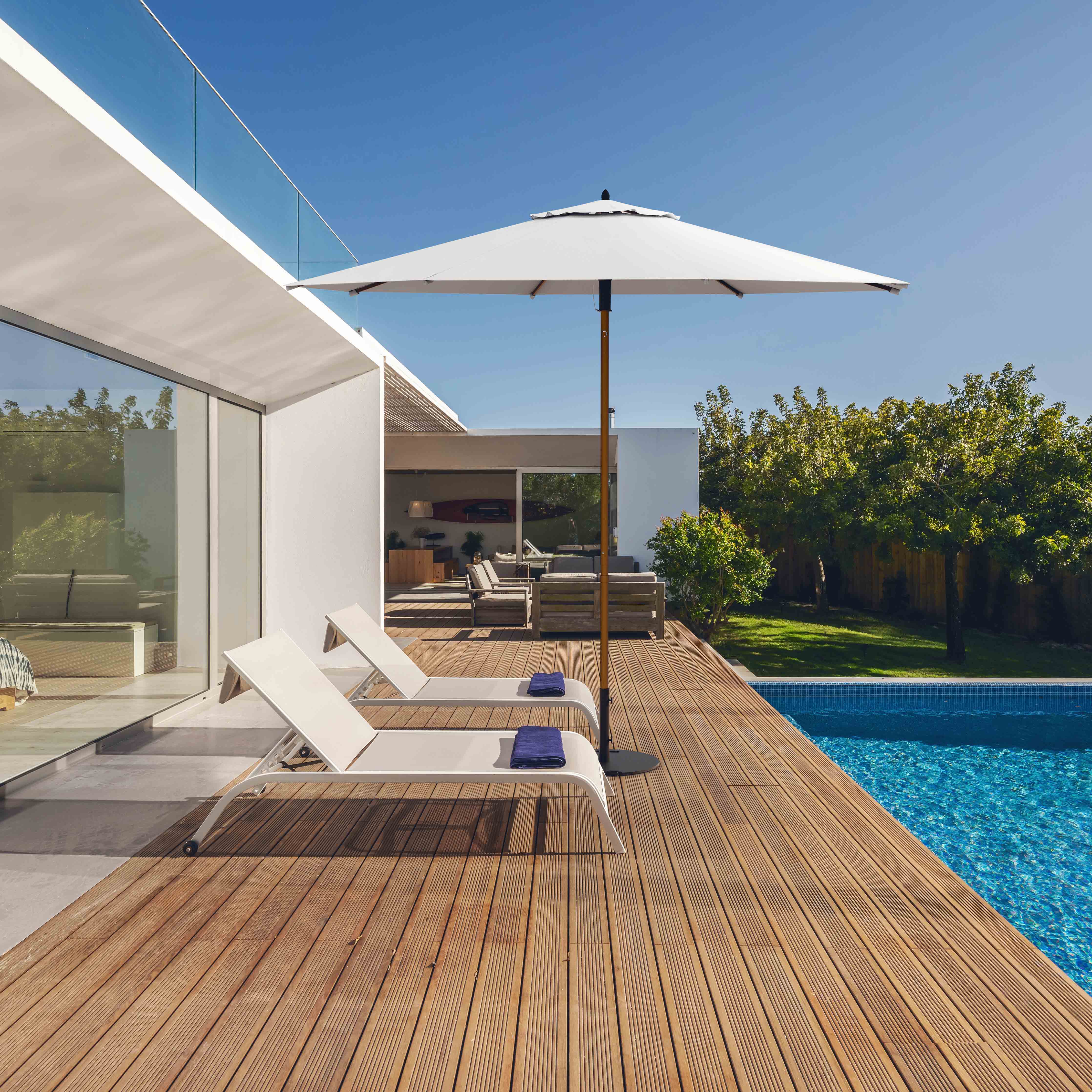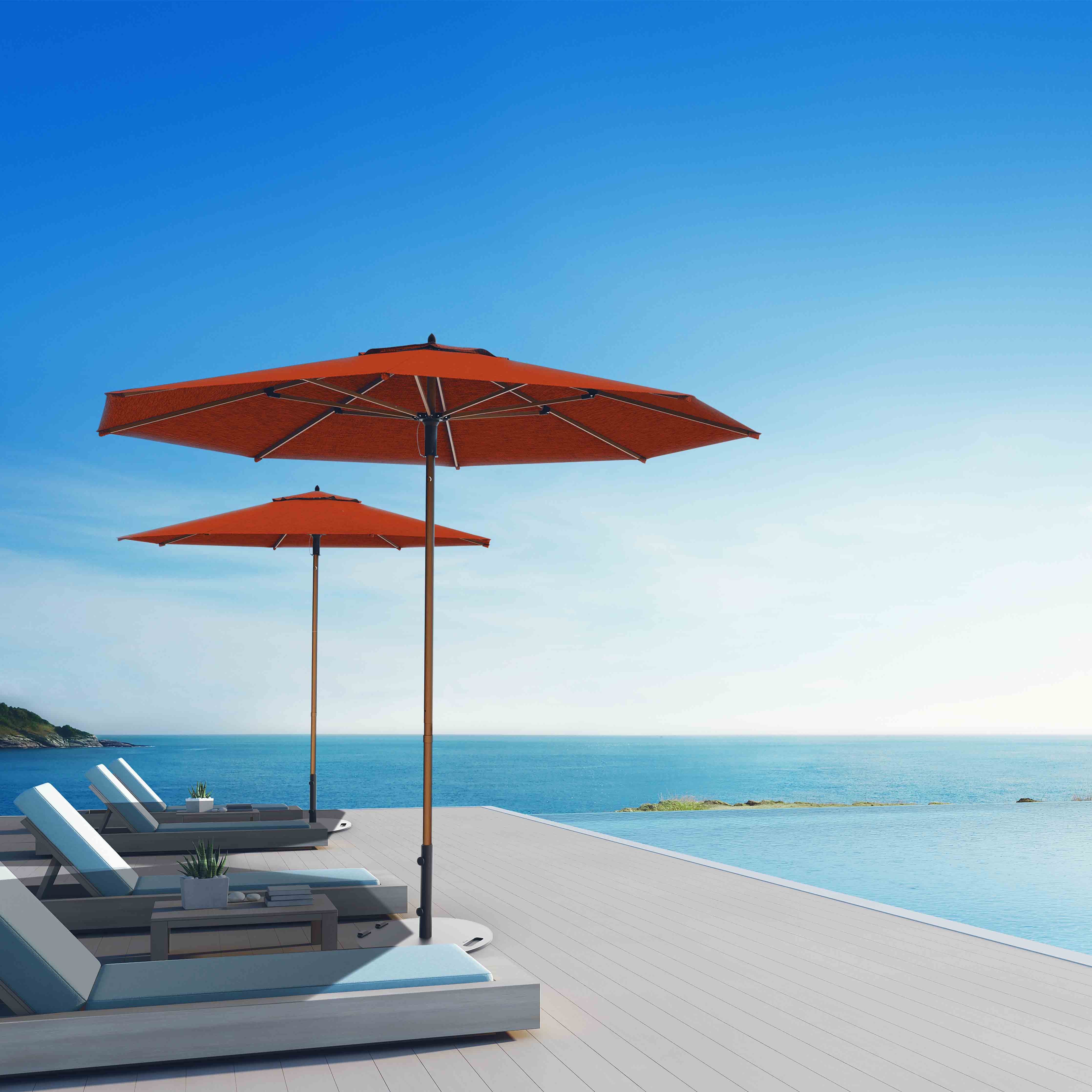 Presenting the Wooden™ umbrella, where elegance meets durability. Its aluminum pole, featuring a woodgrain finish, perfectly complements the heavy-duty aluminum ribs, seamlessly operated by our Push & Pop Mechanism. If you have an eye for style, this is the umbrella for you.